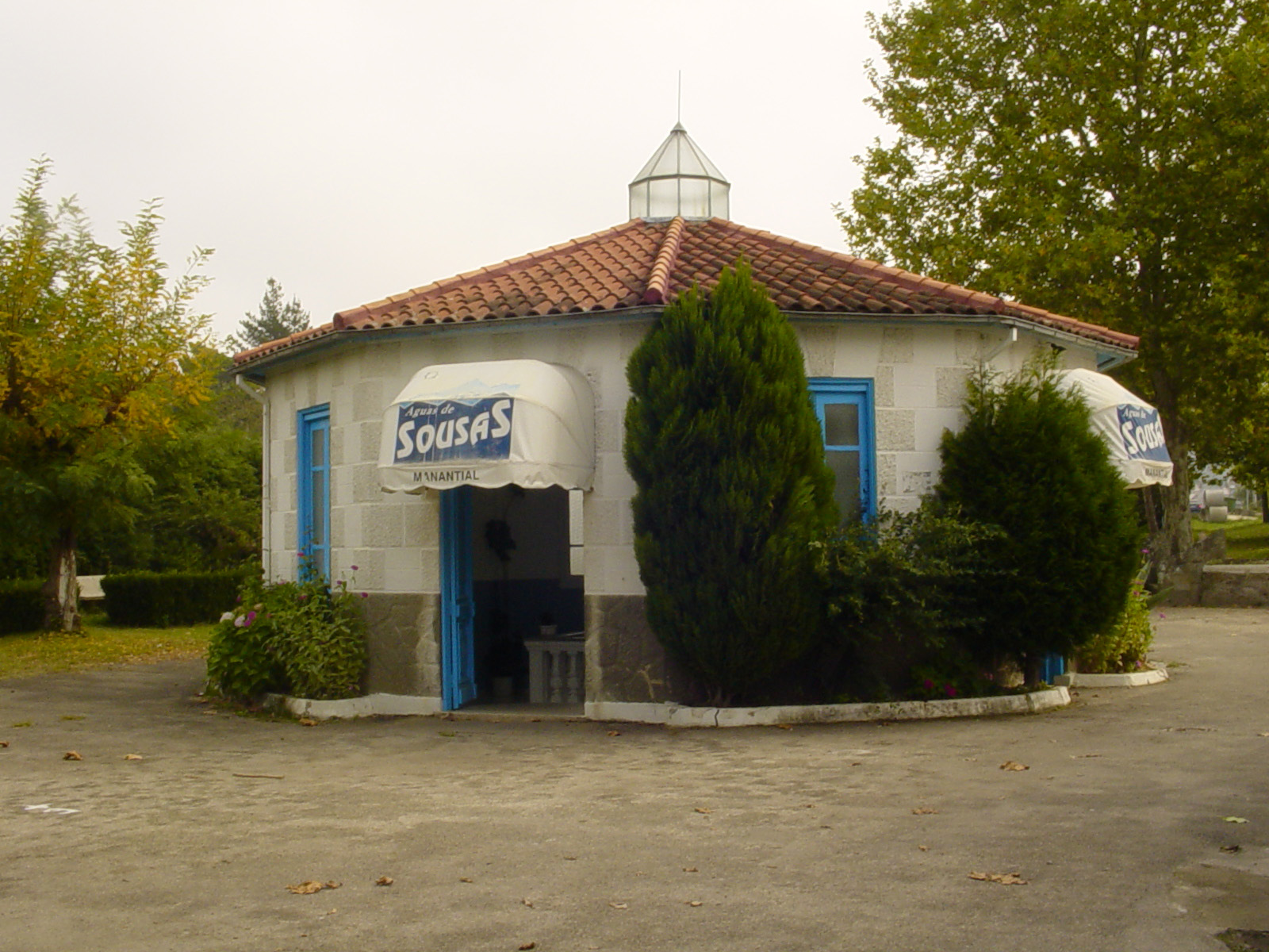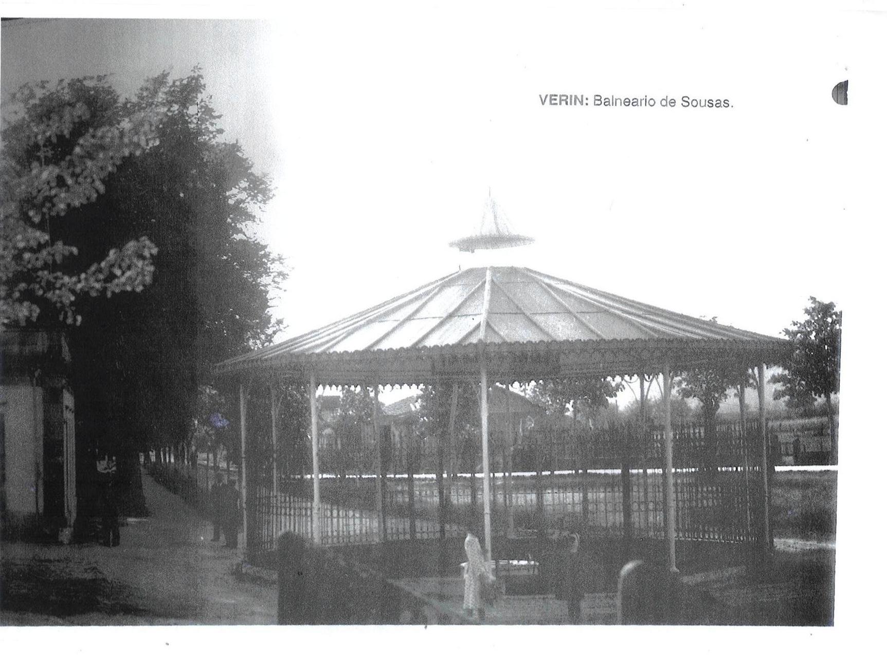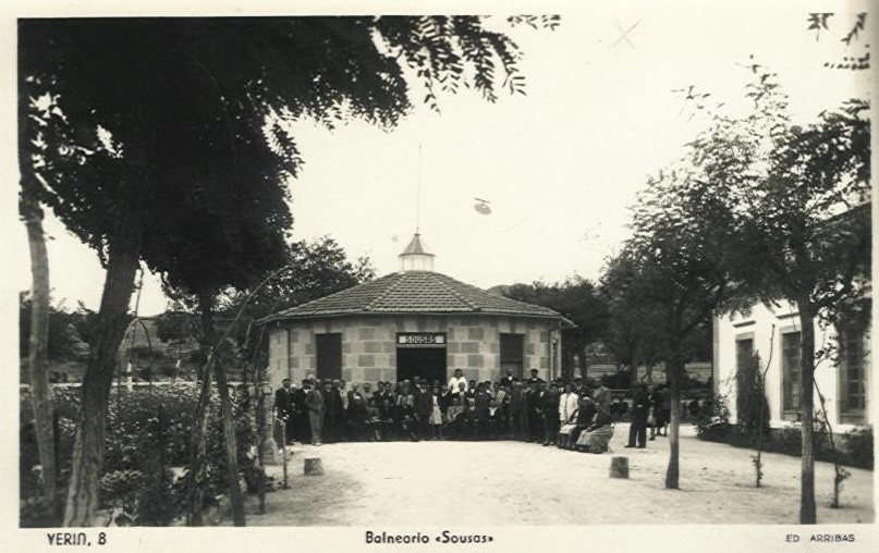 A nascente da Sousas foi declarada de utilidade pública em 1859. Desde há muito tempo que a fonte tem vindo a ser alvo de conservação, tanto para dotá-la de salubridade como para tornar mais bela a área circundante. Abriu-se um caminho desde a vila de Verín e protegeu-se o ponto de captação com uma caixa de vidro que conserva as suas qualidades. Houve em primeiro lugar um edifício ou buvette, que era precedido por uma galeria de 70 metros, ambos formados por uma estrutura metálica que conferia ao conjunto uma imagem muito elegante e muito moderna, ao gosto de uma época, entre os séculos XIX e XX, onde o Ferro simbolizava o progresso.