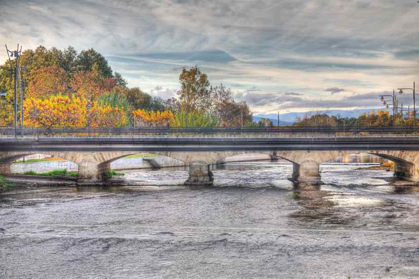 A passagem do bairro de São Lázaro para o centro urbano de Verín é feita através de uma ponte construída em 1853, na estrada que une Villacastín, província de Segóvia, a Vigo. A lenda fala da existência de uma ponte romana da época de Trajano, mas, até hoje, não passa de uma lenda, pois não se encontraram na zona quaisquer vestígios da ponte. A partir de provas documentais, sabemos da existência de uma ponte que a Condessa de Monterrei, Inés de Velasco y Tovar, mandou reparar no seu tempo e que, por volta de 1740, havia uma ponte moderna de sete arcos (noutros locais, diz-se que tinha seis), com 77 metros de comprimento e 4 metros de largura, que foi construída no tempo de Filipe II. Em 1795, foi o Duque de Alba (também Conde de Monterrei) que procedeu à sua reforma. No final das obras, os relatos já falam de uma ponte magnífica com um sistema de construção moderno. Desde a incorporação de Verín no condado, a passagem da ponte era regulamentada por um imposto de barreira que era leiloado ao maior licitante para cobrança.